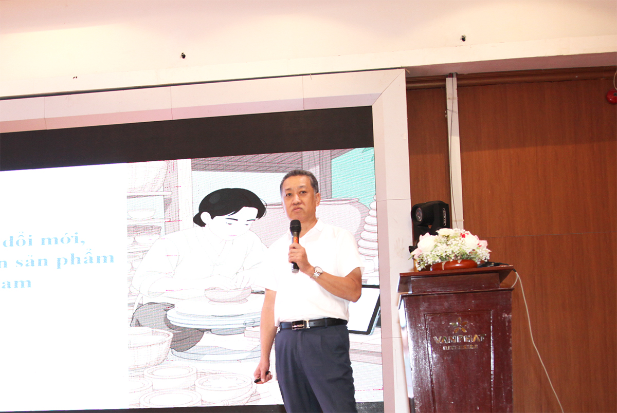 Ông Nguyễn Khánh Toàn, Giám đốc Tik Tok Shop trình bày vấn đề “Chuyển đổi số – Cơ hội nâng cao chất lượng và quảng bá sản phẩm du lịch làng nghề”. Bà Trương Thị Bạch Thủy – Giám đốc HTX mây tre đan Thủy Tuyết với tham luận “Hành trình từ làng nghề đến thương hiệu điểm đến xanh”.
