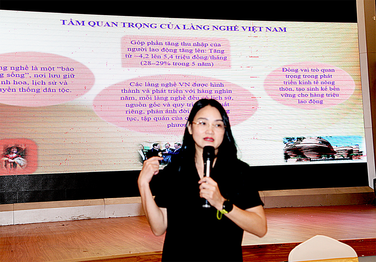 Trình bày tham luận “Thực trạng phát triển du lịch làng nghề Việt Nam trong bối cảnh hội nhập và chuyển đổi số và kiến nghị đề xuất”, Phó Trưởng phòng Phòng Lữ hành (Cục Du lịch Quốc gia Việt Nam) Hoàng Hoa Quân cho biết, Việt Nam hiện có hơn 5.400 làng nghề và làng có nghề, trong đó gần 2.000 làng nghề, làng nghề truyền thống được công nhận. Làng nghề là nơi sản xuất, lưu giữ giá trị văn hóa bản địa, những kỹ thuật thủ công được trao truyền qua nhiều thế hệ… và đã tạo nên hệ thống du lịch làng nghề đa dạng với dòng văn hóa du lịch đặc sắc, hấp dẫn. Tuy nhiên quá trình đô thị hóa và sự thay đổi xu hướng trải nghiệm của du khách đã tạo ra các thách thức, đòi hỏi các làng nghề phải nâng cao chất lượng, đổi mới sản phẩm.